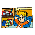| 11 | Click on the correct answer.![]() Q: What is Ann doing? A: She is ________ about school. |