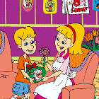 | X 20 | Type the correct answer in the white blank. Now Lucy and Rick are __________ (talk) on the phone. |