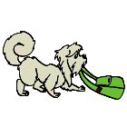 | X 19 | Type the correct answer in the white blank.![]() Q: What are you doing? A: I am _________at my dog. |