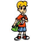 | X 18 | Click on the correct answer. ![]() Q: Is he taking off his school bag? A: _______________. |