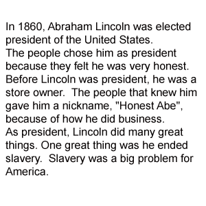 | 15 | Click on the correct answer.![]() Lincoln was chosen as president because people thought that he was _________. |