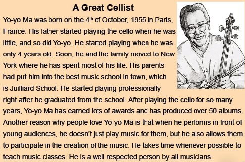 a. He started playing the cello when he was little | a. He started playing the cello when he was little |