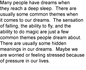 | 17 | Click on the correct answer.![]() Can dreams mean something? |