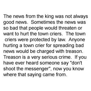 | 17 | Click on the correct answer.![]() Anyone who hurt the town crier would be charged with __________. |