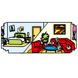 | 15 | Click on the correct answer. ![]() Q: Is Ann´s father in the bedroom? A: ________________ |